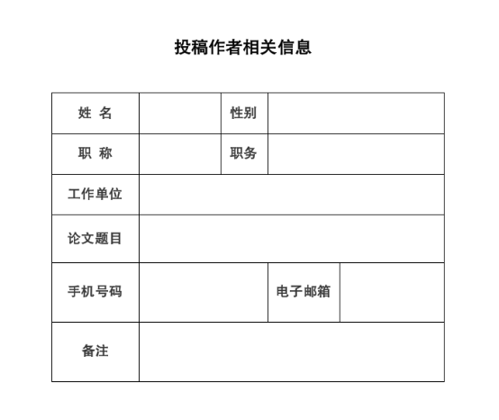 1.论文采用word文档,与投稿作者相关信息(表格样式附后)以邮箱附件形式发送至dcmayuan@163.com,邮件主题请注明“单位+姓名+论文题目”。